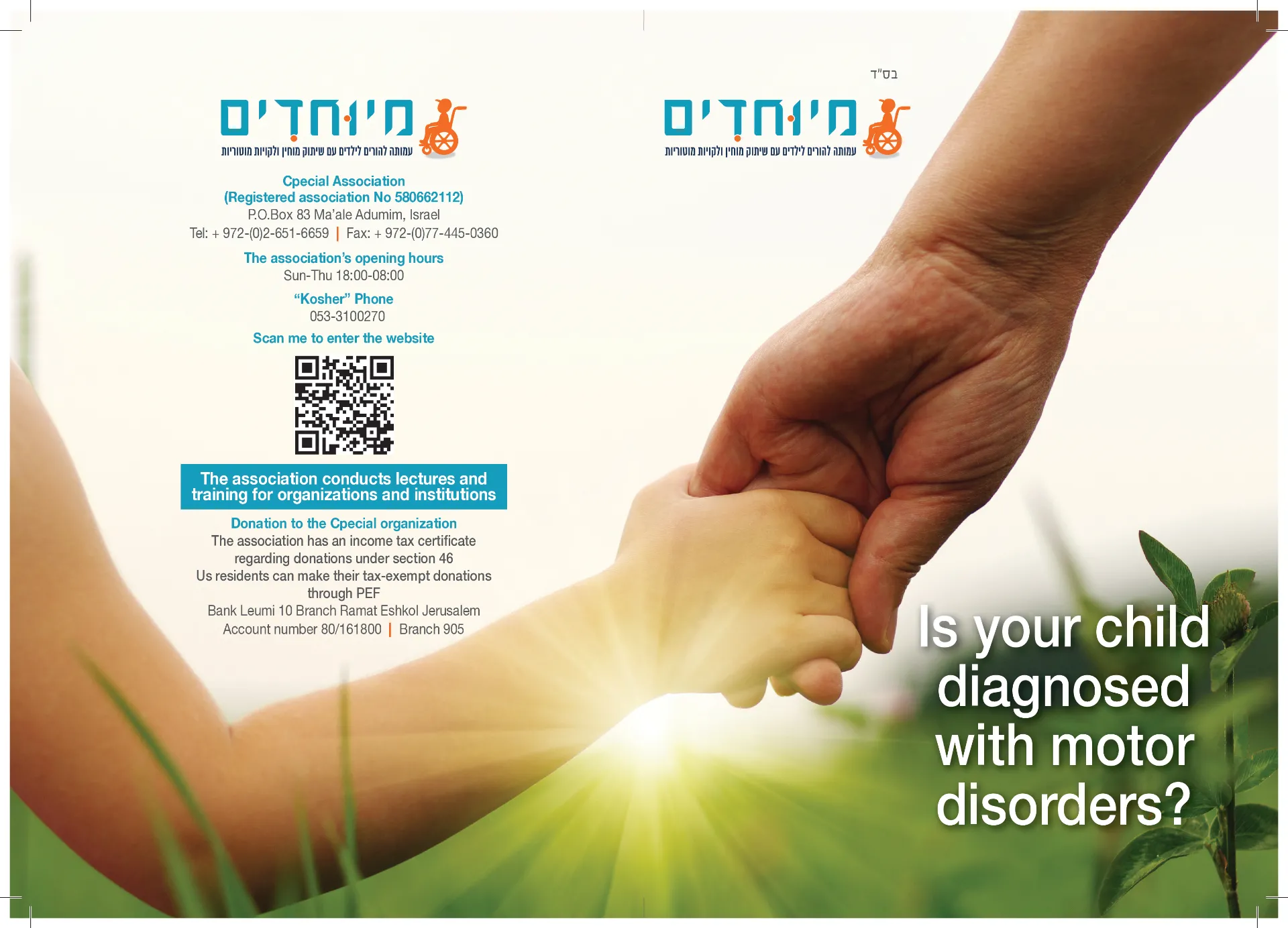מאז 2018, עמותת מיוחדים פועלת לבנות קהילה חזקה וסולידרית, לסייע להורים ולשנות את עתיד הילדים עם לקויות מוטוריות בישראל